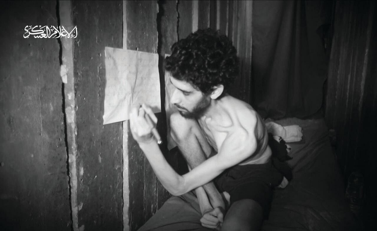 * På bilden syns Evyatar David, gisslan hos Hamas. Hamas har själva släppt bilden och vi har fått tillstånd att använda den av Hostages and Missing Families Forum som representerar gisslans familjer.